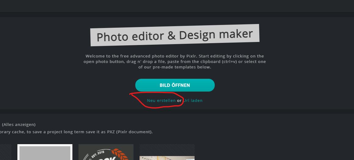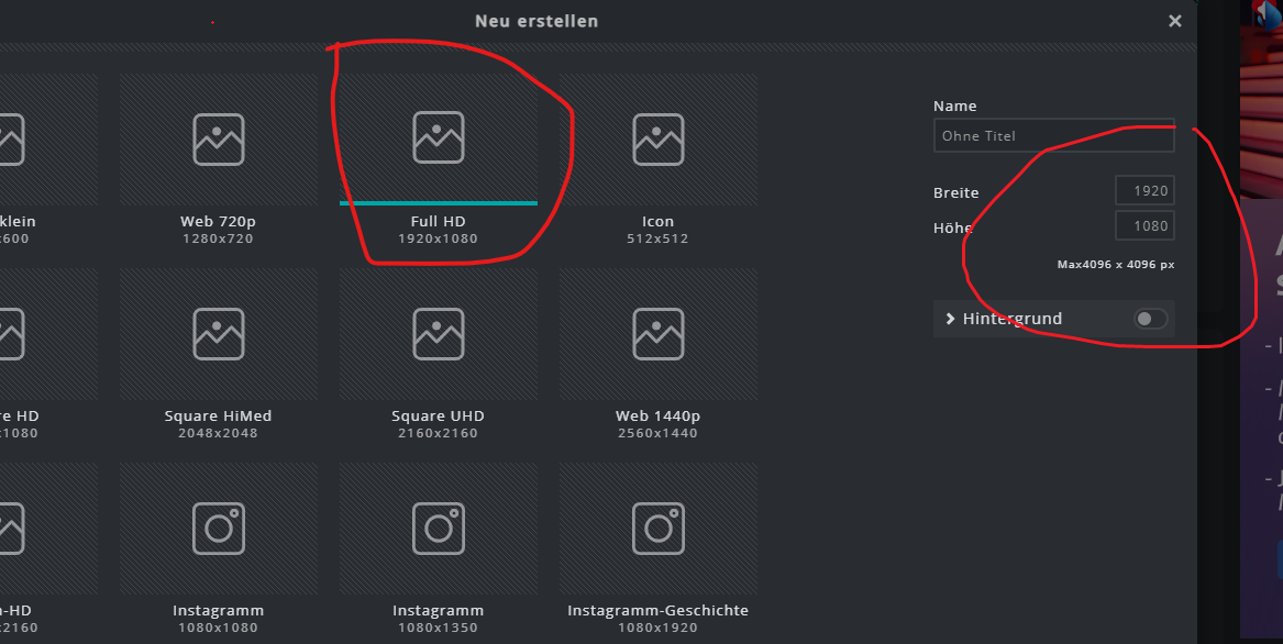 - Achte darauf, dass das Bild in einer Auflösung von 1920×1080 Pixeln daher kommt. Hierzu gehst auf https://pixlr.com/de/e/ und wählst unter «neu erstellen» das Format 1920×1080.