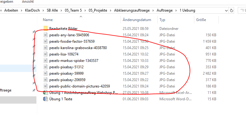 - Bearbeitete die Bilder und speichere diese mit dieser Bildbeschreibung (shop-(Produktname)-klar-doch.jpg) im Ordner ab