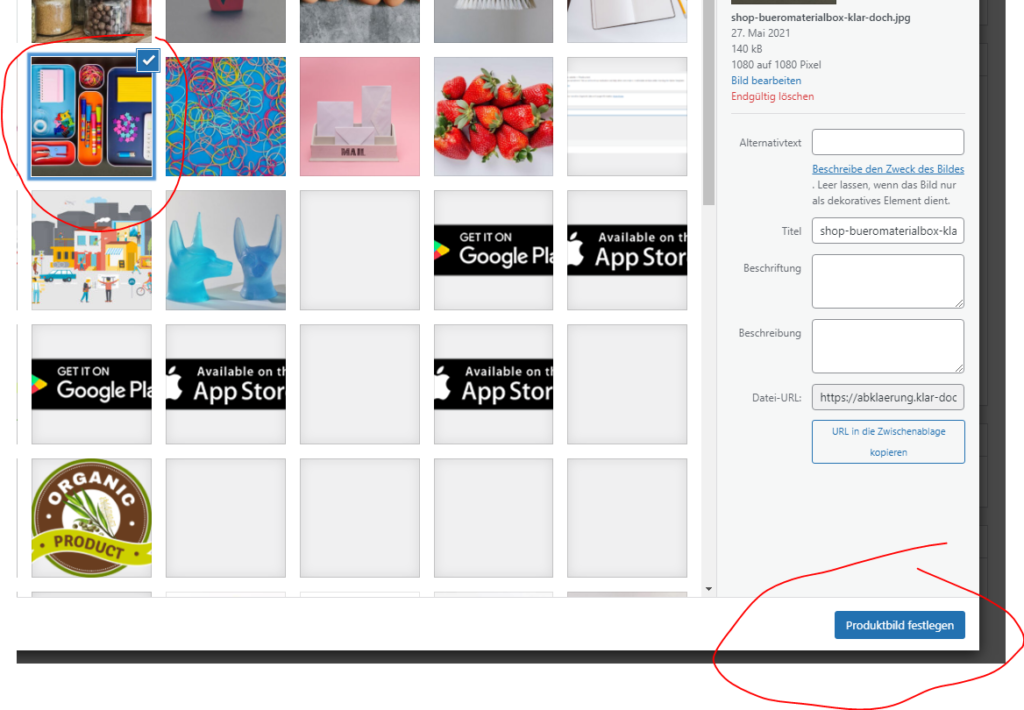- 6c. …… und dann auswählen und festlegen (auf Produktbild festlegen unten rechts).