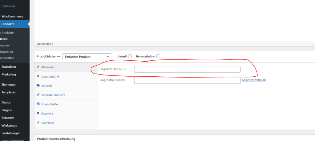 - 8. Bei Regulärer Preis (CHF) kannst du denn vorgegebenen Preis von der Excelliste einsetzen.