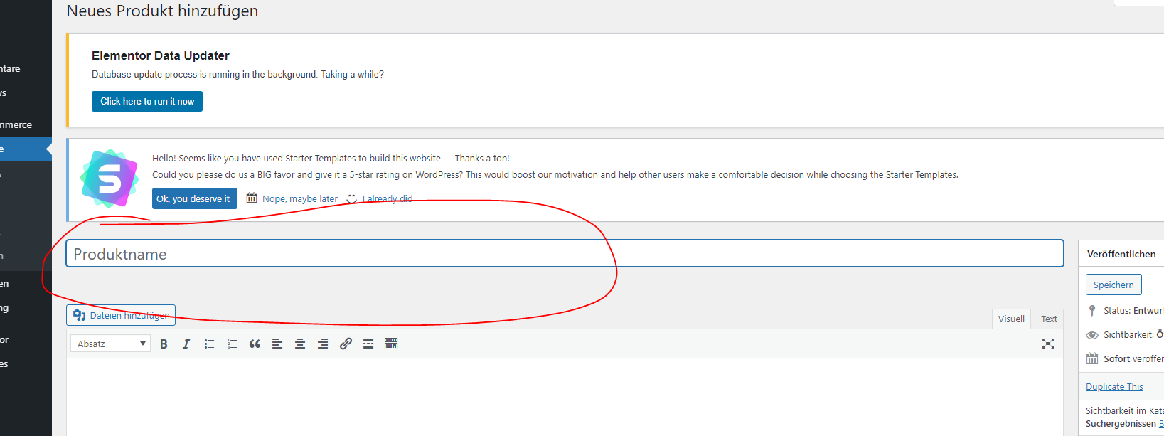 - 5. Jetzt solltest du den Titel des Produktes eingeben. (Siehe vorgegebene Excelliste)